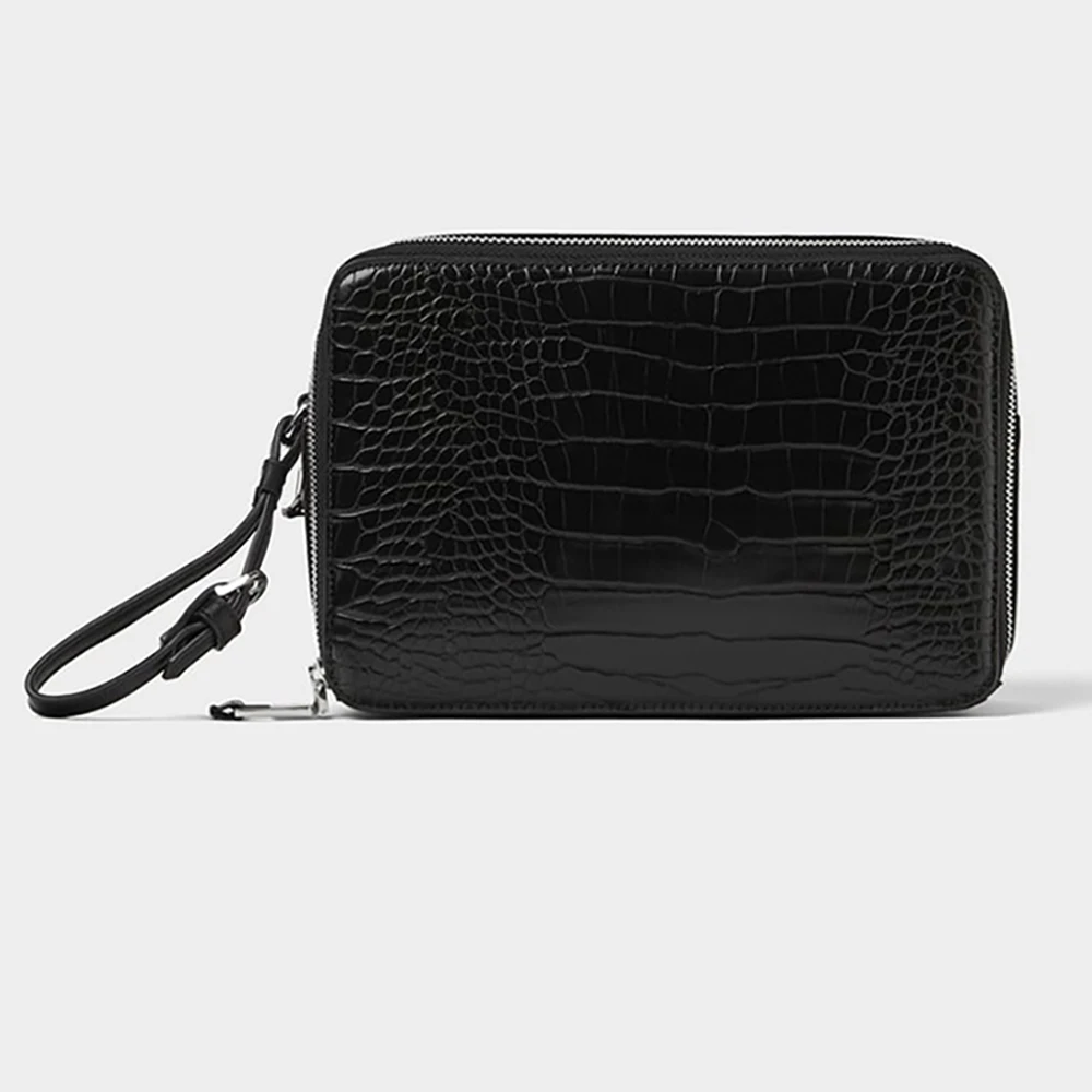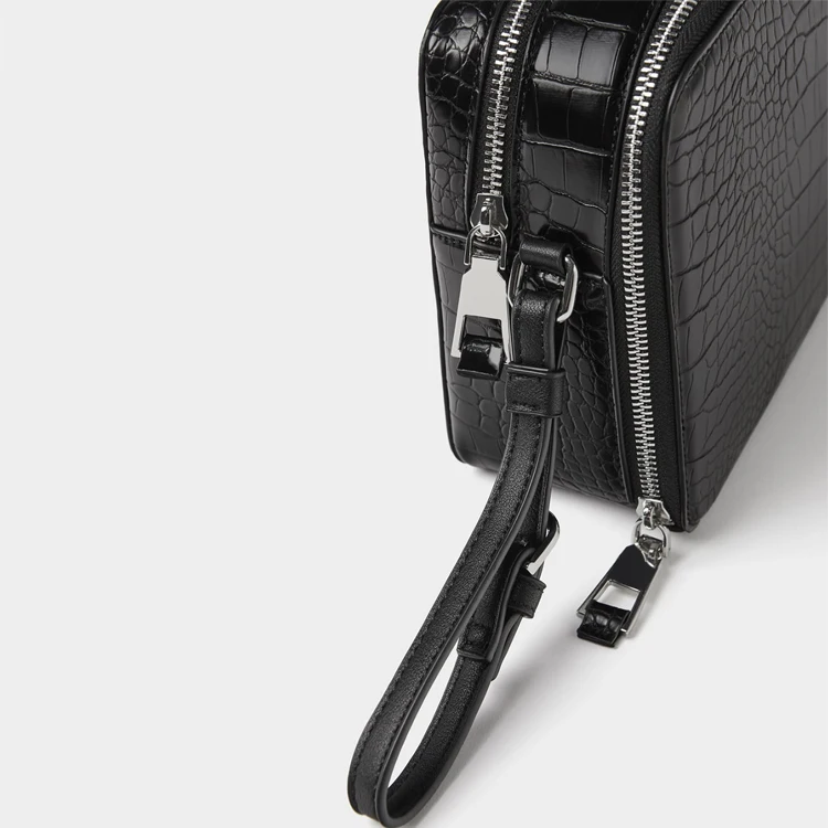 Custom Logo PU Croc Leather Men's Toiletry Wash Bag Black Travel Dopp Kit for Men